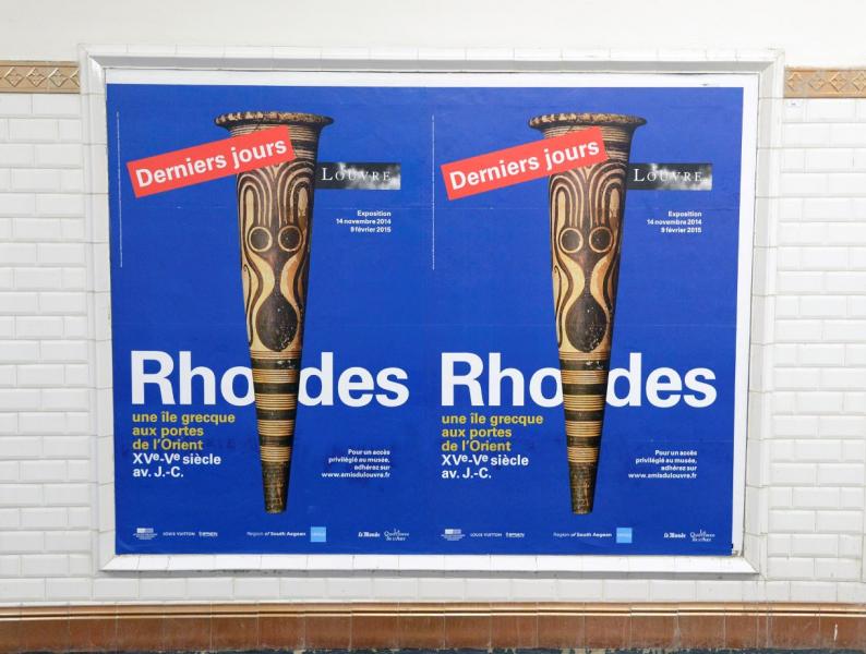 Τις ημέρες από 12 μέχρι 18 Ιανουαρίου, που διήρκεσε η καμπάνια προβολής της έκθεσης... για τους αρχαιολογικούς θησαυρούς της Ρόδου που φιλοξενείται στο Μουσείο του Λούβρου, τεράστιες αφίσες αναρτήθηκαν σε 250 σημεία σε 111 στάσεις του παρισινού μετρό, δίνοντας την ευκαιρία στα εκατομμύρια των επιβατών να ενημερωθούν για την έκθεση, η οποία θα διαρκέσει μέχρι και τις 9 Φεβρουαρίου.