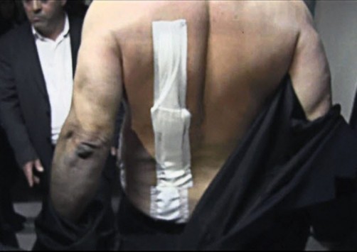 Η 55χρονη δεν κατονόμασε και δεν υπέδειξε το πρόσωπο, που όπως ισχυρίζεται, χτύπησε τον κ. Καρατζιά. Την 25η Μαρτίου 2013 η κατηγορούµενη, αφού εξύβρισε τον κ. Καρατζιά, τον ακολούθησε και τον χτύπησε µε κλοτσιά στο γόνατο. Όπως κατέθεσε ο κ. Καρατζιάς, ενώ κινήθηκε για να αποχωρήσει, η κατηγορούµενη τον χτύπησε στην πλάτη µε ένα σουγιά, προκαλώντας του θλαστικό τραύµα µήκους 50 cm περίπου.