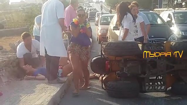 Η γουρούνα, στην οποία επέβαιναν δύο κορίτσια, ξέφυγε από την πορεία της και ανετράπη με αποτέλεσμα των τραυματισμό των δύο επιβατών του, καμία εκ των οποίων δεν φορούσε κράνος.