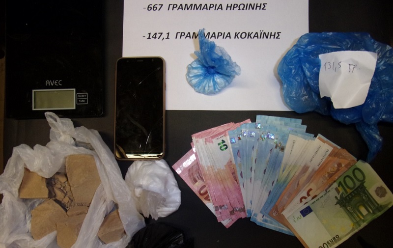 Κατά τον αστυνομικό έλεγχο που διενεργήθηκε βρέθηκαν στην κατοχή του και κατασχέθηκαν ηρωίνη βάρους 468,5 γραμμαρίων τοποθετημένη σε δυο συσκευασίες, κοκαΐνη βάρους 110,1 γραμμαρίων, μια ζυγαριά ακριβείας, το χρηματικό ποσό των 1.600 ευρώ, ένα κινητό τηλέφωνο και δύο κάρτες sim. Από την εξέλιξη της αστυνομικής έρευνας διαπιστώθηκε, ότι ο κατηγορούμενος απέκρυπτε ναρκωτικές ουσίες σε υπαίθριες «καβάτζες».
