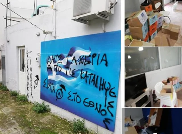 «Απο τους βανδαλισμούς των γραφείων της ΔΗΜΤΟ την παραμονή ΧΡΙΣΤΟΥΓΈΝΝΩΝ. Αγνωστοι τραμπούκοι εκτός από τις καταστροφές στην υποδομή του γραφείου κατέστρεψαν και τρόφιμα που απλοί συμπολίτες προσέφεραν για την δράση αλληλεγγύης #κανένας_μόνος_στο_Χαιδαρι με κύριο προορισμό το χριστοδουλειο ίδρυμα και το χαμόγελο του παιδιού της περιοχής μας. Εμείς δεν έχουμε να προσθέσουμε τίποτε πάρα να ευχηθούμε σε όλους καλά Χριστούγεννα με αγάπη, τέτοιες πράξεις μίσους μας κάνουν πιο δυνατούς, δεν φοβόμαστε Συνεχίζουμε!