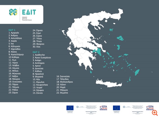 Στο αναβαθμισμένο Εθνικό Δίκτυο Τηλεϊατρικής θα ενταχθούν εντός του επόμενου έτους το Αγαθονήσι, ο Άγιος Ευστράτιος, η Ανάφη, η Αντίπαρος, οι Αρκιοί, η Δονούσα, η Κύθνος, η Ηρακλειά, η Θηρασιά, η Θύμαινα, η Κέα, η Κίμωλος, τα Κουφονήσια, οι Λειψοί, η Σέριφος, η Σίκινος, η Σχοινούσα, η Τέλενδος, η Φολέγανδρος, η Χάλκη, τα Ψαρά και η Ψέριμος.