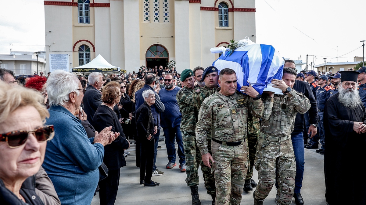 ΣΤΕΦΑΝΟΣ ΡΑΠΑΝΗΣ/EUROKINISSIΌπως αναφέρει το creta24.gr, το φέρετρο του Ραφαήλ, τυλιγμένο με την ελληνική σημαία, έφτασε στον ιερό ναό με χειροκροτήματα και στρατιωτικές τιμές.