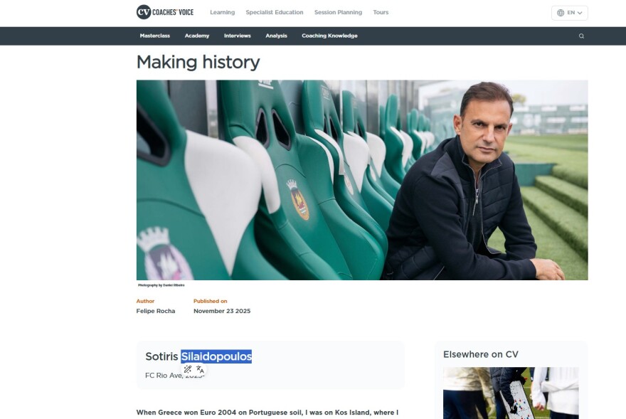 Ο προπονητής της Ρίο Άβε, Σωτήρης Συλαϊδόπουλος έγραψε στο πασίγνωστο «Coach Voice» όλες τις λεπτομέρειες της διαδρομής του απ' όταν ήταν ποδοσφαιριστής μέχρι και τώρα που έφτασε να κάθεται για πρώτη φορά στην καριέρα του στον πάγκο ομάδας από το εξωτερικό, της Ρίο Άβε.