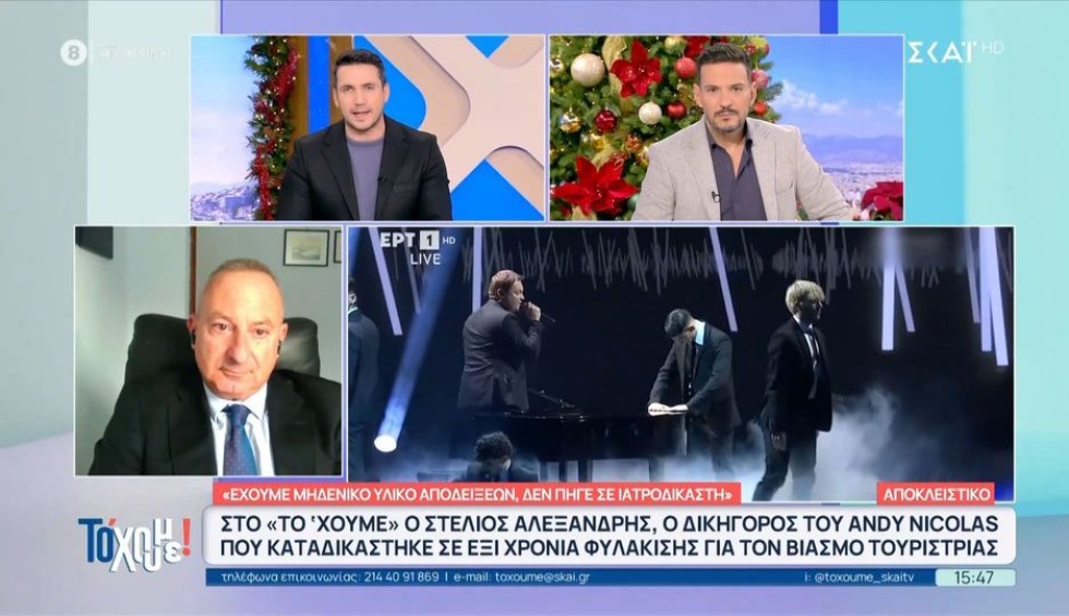 Ο δικηγόρος του Άντι Νίκολας, Στέλιος Αλεξανδρής, μίλησε στην εκπομπή «Το΄Χουμε» κάνοντας αναφορά στα ανεπαρκή στοιχεία της τουρίστριας που κατηγόρησε τον πελάτη του για βιασμό.