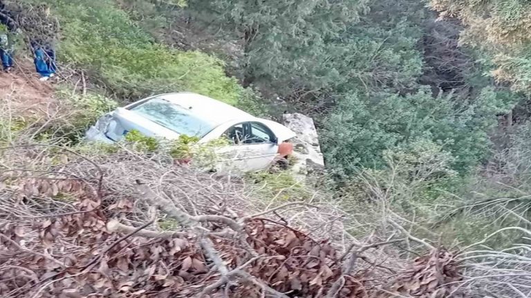 Από τη σύγκρουση ένα αυτοκίνητο εξετράπη της πορείας του και κατέληξε στον γκρεμό, με αποτέλεσμα τον εγκλωβισμό μιας γυναίκας.
