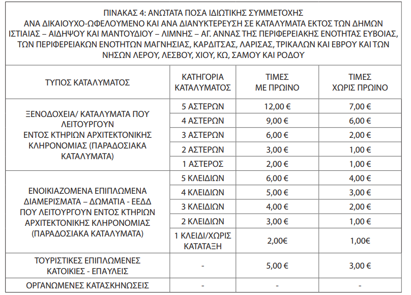 Οσοι επιλέξουν άλλους προορισμούς που απαιτούν ιδιωτική συμμετοχή, αυτή κυμαίνεται από 1 ευρώ ως 12 ευρώ κατ΄ άτομο ημερησίως, ανάλογα με το κατάλυμα και την παροχή πρωινού.