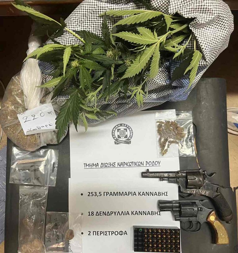 Στην κατοχή του 33χρονου:220 γραμμάρια ακατέργαστης κάνναβης23,8 γραμμάρια κατεργασμένης κάνναβης (σοκολάτα)18 δενδρύλλια κάνναβηςΠλήρης τεχνικός εξοπλισμός εσωτερικής καλλιέργειας κάνναβηςΠερίστροφο41 ΦυσίγγιαΑυτοσχέδιο τσιγάρο κάνναβης.