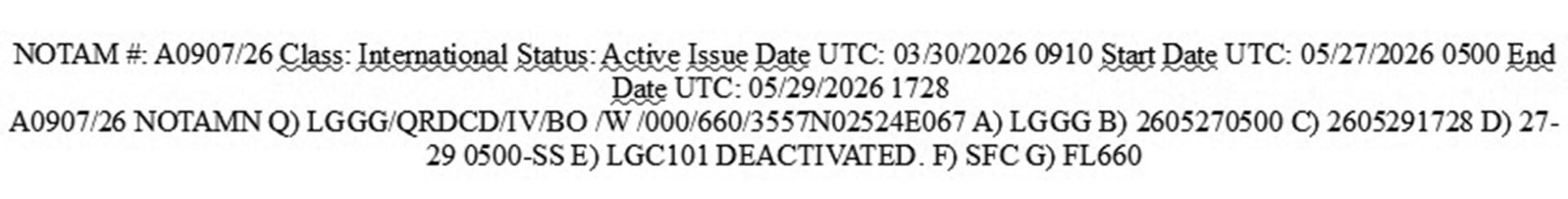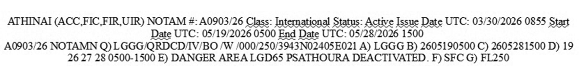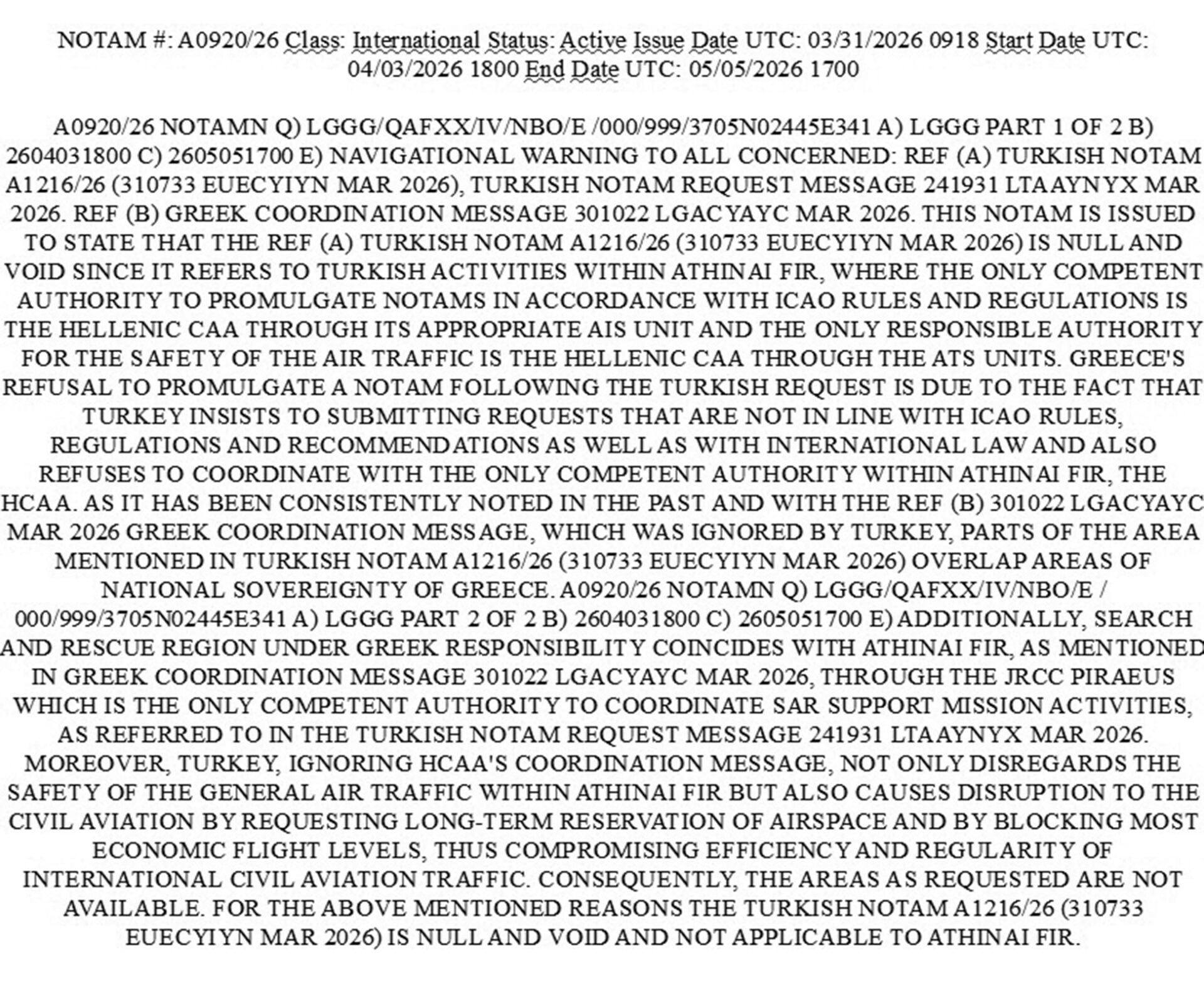 Μπλοκάρει αεροδιάδρομους στο FIR Αθηνών και προκαλεί μείζον πρόβλημα στην ομαλή ροή και ασφάλεια των πολιτικών αεροσκαφών. Μολονότι υπάρχει διεθνής αναταραχή λόγω του πολέμου στο Ιράν στα FIR Αθηνών, Κωνσταντινούπολης, Λευκωσίας, Αγκύρας, Τελ Αβίβ, Βηρυτού κ.λπ., η Τουρκία αδιαφορεί και στοχεύει σε επιθετικές κινήσεις σε βάρος της Ελλάδας και της Κύπρου.
